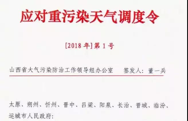 日前,山西省大氣污染防治工作領導組辦公室發(fā)布了今年第1號應對重污染天氣調度令。要求包括太原市在內的10個市于今日12時至1月15日24時期間,采取不低于橙色級別的應急減排措施。