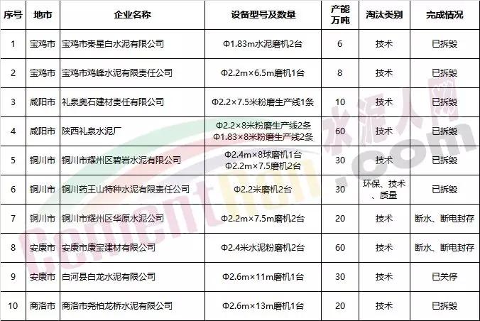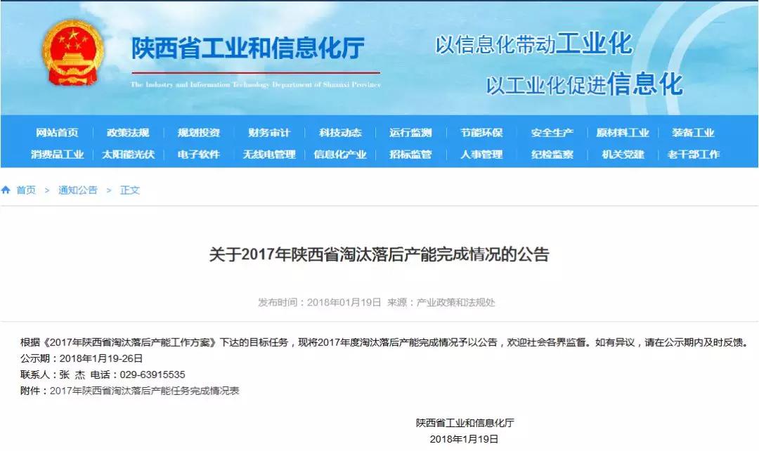 【水泥人網(wǎng)】日前,陜西省工業(yè)和信息化廳公告了2017年陜西省淘汰落后產(chǎn)能完成情況。