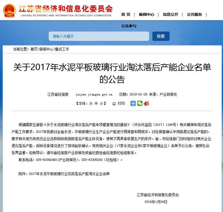 【水泥人網(wǎng)】日前,江蘇省經(jīng)信委發(fā)布關(guān)于2017年水泥平板玻璃行業(yè)淘汰落后產(chǎn)能企業(yè)名單的公告。公告稱:根據(jù)國家五部委《關(guān)于水泥玻璃行業(yè)淘汰落后產(chǎn)能專項督查情況的通報》有關(guān)精神和淘汰落后產(chǎn)能工作要求,2017年江蘇省工信委對江蘇省全省水泥行業(yè)生產(chǎn)企業(yè)產(chǎn)能進行再排查和再核實。