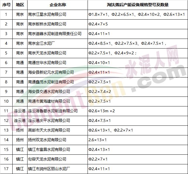 備注:南通世華水泥有限公司因法院查封暫時未徹底拆除,已采取斷電斷水措施,不具備恢復(fù)生產(chǎn)能力。待法院解封后立即拆除。