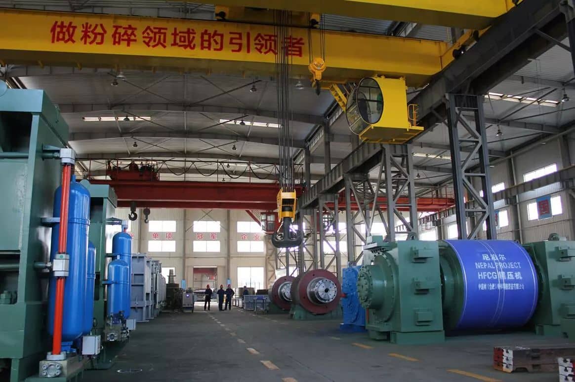 水泥裝備中輥壓機稱得上是核心裝備之一。在水泥生產(chǎn)過程中,“兩磨一燒”的生料磨和水泥磨粉磨環(huán)節(jié)占總電耗的65%-70%,是節(jié)能降耗、提產(chǎn)增效尤為關(guān)鍵的環(huán)節(jié)。