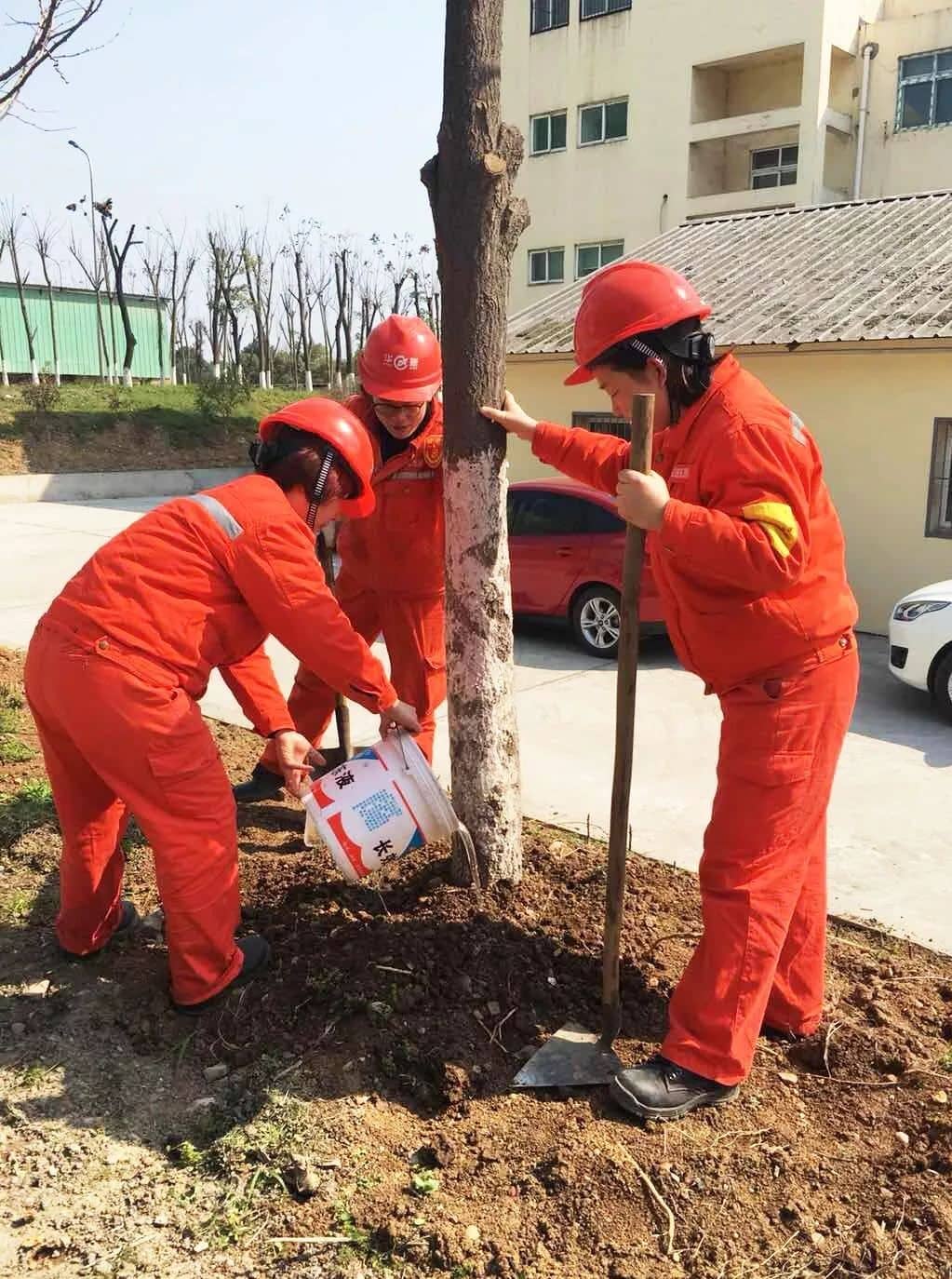 宜昌公司員工正在為樹苗澆水