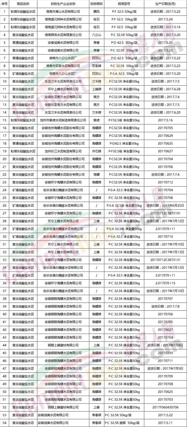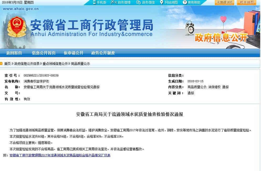 【水泥人網(wǎng)】3月15日,安徽省工商局官網(wǎng)通報流通領(lǐng)域水泥質(zhì)量抽查檢驗情況。通報稱,為了加強流通領(lǐng)域商品質(zhì)量監(jiān)管,保障消費者合法權(quán)益,維護消費安全,安徽省工商局2017年依法對淮南、池州、銅陵、安慶等地市場上銷售的水泥進行了省級質(zhì)量抽查檢驗。