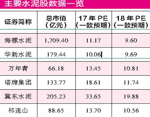 先看行業(yè)龍頭海螺水泥,這是一家?guī)缀跛腥潭紵嵬频陌遵R水泥股,過去半年基本每個(gè)月機(jī)構(gòu)給出的盈利預(yù)期都在上調(diào),目前市場(chǎng)對(duì)公司2017年歸母凈利潤(rùn)的一致預(yù)期中值落在155.59億元,2018年則為177.12億元,對(duì)應(yīng)PE分別為11.1倍、9.6倍。作為全球最大的單一品牌水泥供應(yīng)商,公司依靠著名的“T型”戰(zhàn)略,成為了國(guó)內(nèi)成本最低的水泥制造企業(yè)。(所謂“T型”戰(zhàn)略,指的是借助長(zhǎng)江水路和東部海岸線共同形成的水運(yùn)航道,將安徽海螺的熟料資源與華東區(qū)域?qū)λ嘈枨笞钔⒌难亟?、沿海區(qū)域連接起來。)有別于傳統(tǒng)水泥企業(yè)熟料生產(chǎn)基地與粉磨站相結(jié)合的生產(chǎn)模式,海螺水泥在石灰石集中的區(qū)域設(shè)置熟料生產(chǎn)基地,利用水域運(yùn)輸后至終端市場(chǎng)的粉磨站,從而突破了水泥原本運(yùn)輸半徑小的局限,實(shí)現(xiàn)了華東地區(qū)大規(guī)模的產(chǎn)業(yè)擴(kuò)張。憑借“T型”戰(zhàn)略和規(guī)模效應(yīng),海螺水泥多年來一直處于成本曲線的底端,以2016年數(shù)據(jù)為例,其完全成本較行業(yè)平均水平要低20-30元。