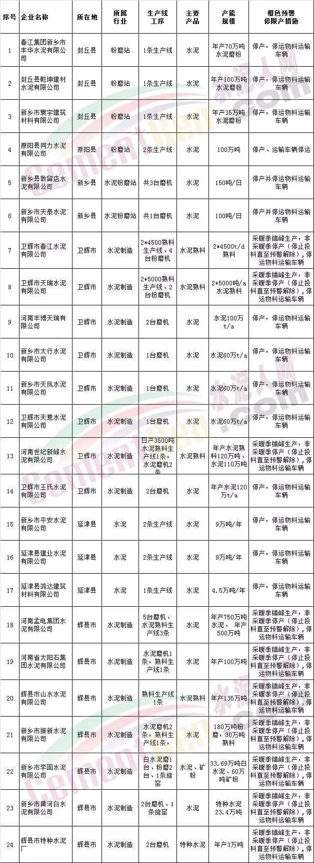 水泥企業(yè)停產限產執(zhí)行要求如下: