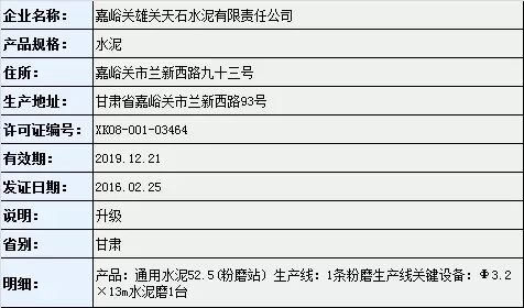 質(zhì)檢總局?jǐn)?shù)據(jù)庫顯示,企業(yè)位于甘肅省嘉峪關(guān)市蘭新西路93號