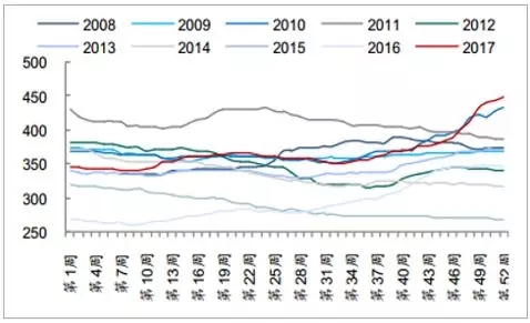 目前北方十五省進(jìn)入錯(cuò)峰生產(chǎn)階段已經(jīng)一至兩個(gè)月,并至少持續(xù)到明年 3 月中旬;同時(shí)伴隨最強(qiáng)錯(cuò)峰季,部分區(qū)域因受霧霾天氣影響,已先后啟動(dòng)重污染天氣應(yīng)急響應(yīng);南方局部地區(qū)額外限產(chǎn)則再度超出市場(chǎng)預(yù)期。從目前市場(chǎng)表現(xiàn)來(lái)看,水泥價(jià)格在冬季仍然實(shí)現(xiàn)穩(wěn)步上漲,最新全國(guó)水泥平均價(jià)格實(shí)現(xiàn) 448.3 元/噸,達(dá)到歷史同期最高位水平;水泥庫(kù)容比目前為 50%,處于近年來(lái)歷史最低水平。這個(gè)冬季,整個(gè)水泥行業(yè)完全印證了我們 2017 年 10 月初發(fā)布冬季策略做出的行業(yè)預(yù)判《這個(gè)冬天不太冷》以及 12 月初發(fā)布的年度策略報(bào)告《新均衡,新思路》,暖冬格局基本形成。