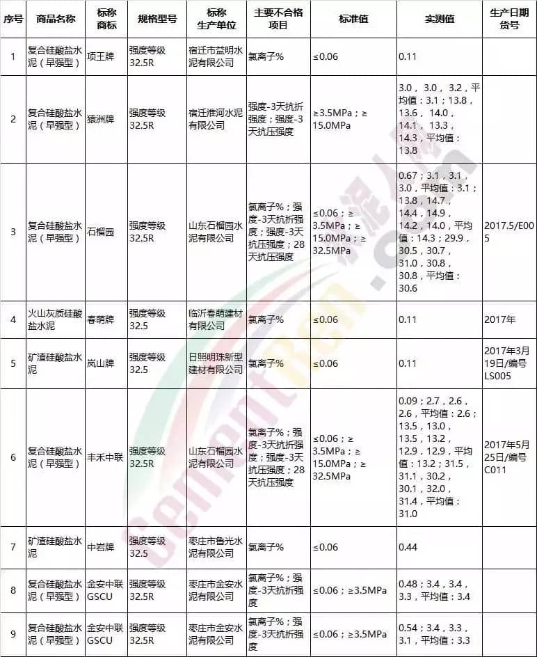 3月28日,江蘇省工商行政管理局官網(wǎng)公布了上年第一階段水泥抽檢結果,被檢測的42組樣品中,不合格組9個,不合格率為21.4%。不合格項目為強度不夠和氯離子超標。