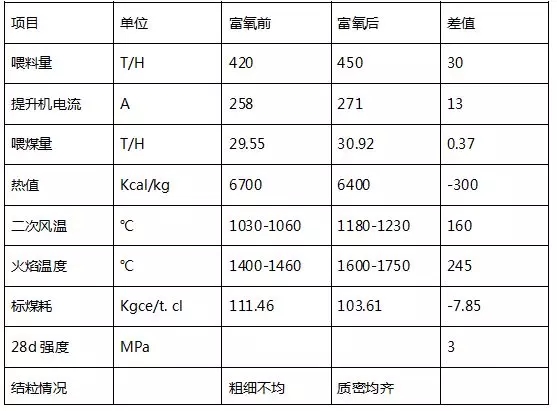 西南科技大學承擔此次富氧技改熱工標定出具運行數(shù)據(jù)為: