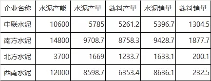 截至2017年底,水泥產(chǎn)能達(dá)5.25億噸。中建材下屬中聯(lián)水泥、南方水泥、北方水泥、西南水泥等2017年產(chǎn)能、產(chǎn)量相關(guān)數(shù)據(jù)(單位萬噸)如下: