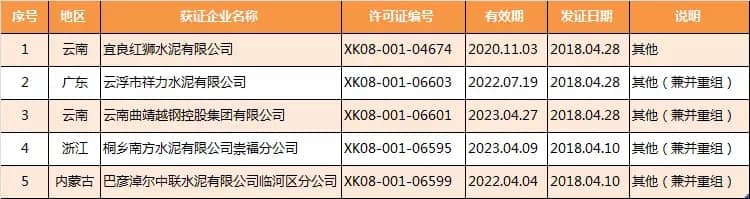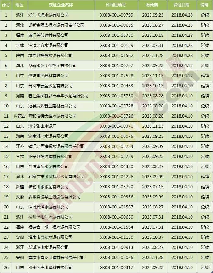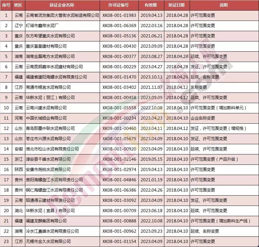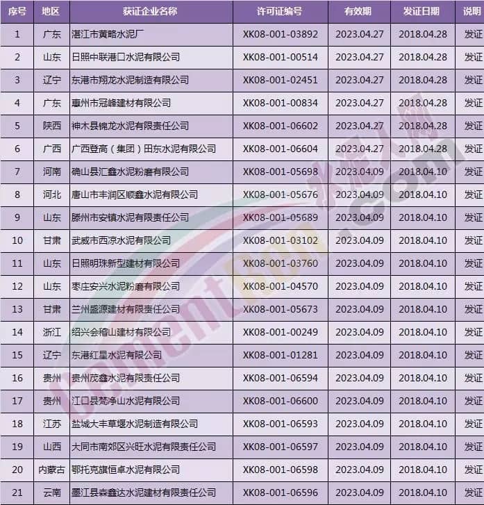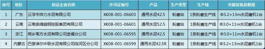 青島即墨中聯(lián)水泥有限公司在4月12日取得新發(fā)許可范圍變更(增規(guī)格)后新證書。生產(chǎn)許可證明細(xì)為,