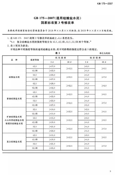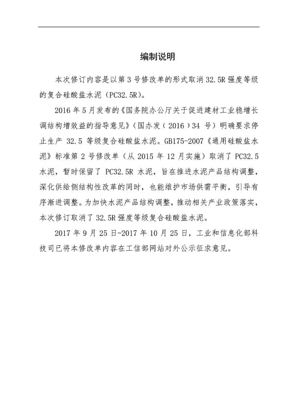 一、《通用硅酸鹽水泥》強(qiáng)制性國家標(biāo)準(zhǔn)第3號(hào)修改單(報(bào)批稿)