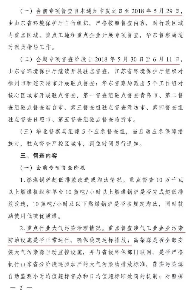 會(huì)期專項(xiàng)督查階段自2018年5月30日至6月11日,山東省環(huán)保廳繼續(xù)開展駐點(diǎn)督查,江蘇省環(huán)保廳組織對徐州市和連云港市開展駐點(diǎn)督查;華東督查局派出5個(gè)工作組對核心區(qū)城市開展駐點(diǎn)督查。