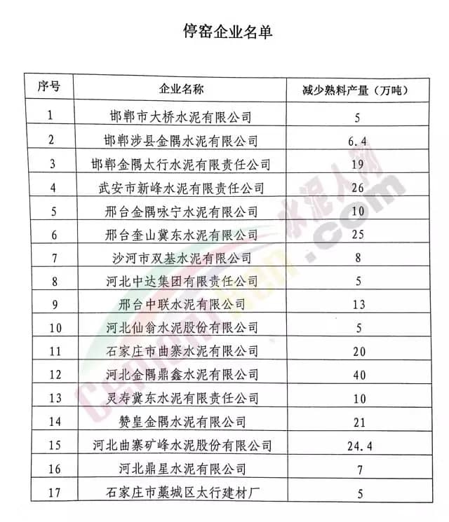 【水泥人網(wǎng)】日前,河北省建筑材料工業(yè)協(xié)會(huì)發(fā)布冀建協(xié)【2018】26號(hào)文件,《關(guān)于冀中南地區(qū)水泥熟料企業(yè)實(shí)施夏季錯(cuò)峰生產(chǎn)的通知》。通知稱(chēng),為全面落實(shí)國(guó)務(wù)院辦公廳《關(guān)于促進(jìn)建材工業(yè)穩(wěn)增長(zhǎng)調(diào)結(jié)構(gòu)增效益的指導(dǎo)意見(jiàn)》(國(guó)發(fā)辦34號(hào))文件精神,進(jìn)一步推進(jìn)河北省水泥行業(yè)供給側(cè)結(jié)構(gòu)性改革,主動(dòng)化解過(guò)剩產(chǎn)能、促進(jìn)節(jié)能減排,提升大氣質(zhì)量,同時(shí)穩(wěn)定市場(chǎng)供需平衡,按照5月11日“晉冀魯豫四省水泥企業(yè)錯(cuò)峰生產(chǎn)工作研討會(huì)”達(dá)成的共識(shí),冀中南地區(qū)(石家莊、邢臺(tái)、邯鄲)水泥熟料企業(yè)將于明日凌晨(5月25日0點(diǎn))至6月13日24點(diǎn)停窯20天。涉及范圍包括石家莊、邢臺(tái)、邯鄲三市水泥熟料企業(yè),共減少熟料產(chǎn)量249.8萬(wàn)噸。