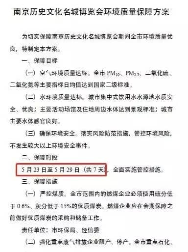 去年5月首屆江蘇發(fā)展大會在南京召開。為保障江蘇發(fā)展大會期間環(huán)境空氣質(zhì)量優(yōu)良,南京市人民政府辦公廳發(fā)布通知文件要求轄區(qū)內(nèi)水泥企業(yè)錯峰停產(chǎn)、限產(chǎn)。
