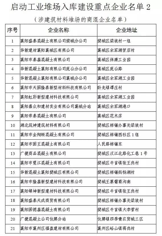 啟動(dòng)工業(yè)堆場(chǎng)入庫(kù)建設(shè)重點(diǎn)企業(yè)名單