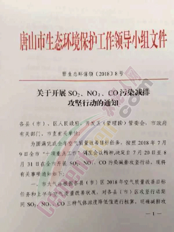 這是繼唐山市豐潤區(qū)人民政府發(fā)布《關于做好近期污染天氣過程應對工作的緊急通知》,嚴格要求工業(yè)企業(yè)進行減排措施后,唐山市又一項嚴格的大氣治理文件。