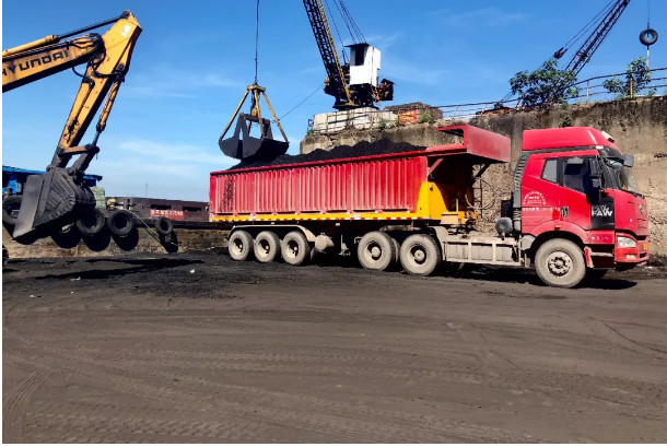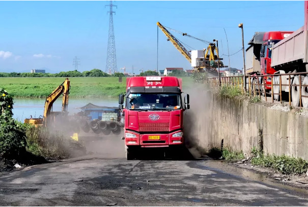 在費(fèi)龍口村督查時(shí),督查人員發(fā)現(xiàn)金華江沿岸有兩座碼頭,分別用于煤炭、砂石裝卸運(yùn)輸,大貨車出入頻繁,現(xiàn)場道路布滿灰塵煤渣,車輛駛過揚(yáng)塵明顯,場地上煤炭、沙石隨意堆放,無任何防塵措施。督查組現(xiàn)場盤問了相關(guān)情況,對存在問題進(jìn)行記錄,并拍攝了揚(yáng)塵實(shí)況。