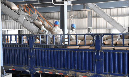 索科托水泥廠生產(chǎn)的水泥出庫。