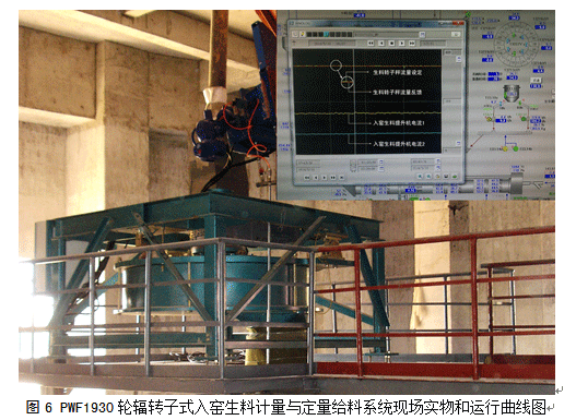 在運(yùn)行曲線圖中,輪輻轉(zhuǎn)子秤的給定和反饋曲線基本重合,黃色曲線為提升機(jī)電流1反饋,青色曲線為提升機(jī)電流2反饋,由圖中曲線可知整個(gè)喂料流量跟蹤穩(wěn)定、快速,提升機(jī)電流比較穩(wěn)定。此外,該控制系統(tǒng)具有遠(yuǎn)程診斷功能,我們可監(jiān)控喂料系統(tǒng)使用情況,即時(shí)提供技術(shù)支持,系統(tǒng)運(yùn)行實(shí)物和曲線圖如圖6所示。