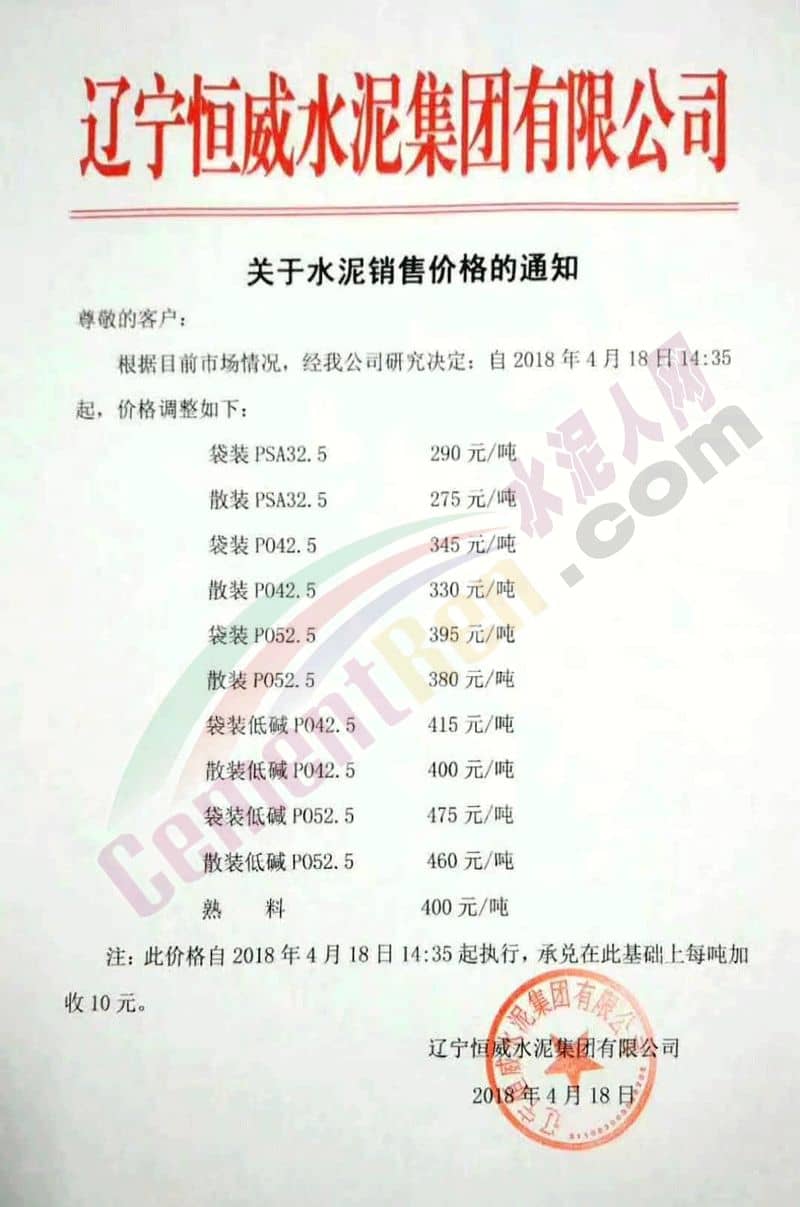 附:遼寧恒威水泥集團(tuán)4月份價(jià)格通知