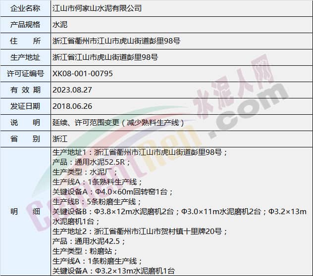 據(jù)水泥人網(wǎng)了解,1000t/d熟料產(chǎn)能出讓企業(yè)浙江衢州市何家山水泥有限公司共有兩條熟料生產(chǎn)線,規(guī)模分別為2500噸/日和1000噸/日。其中熟料1000t/d生產(chǎn)線在幾年前就已停產(chǎn),今年6月份正式拆除退出。