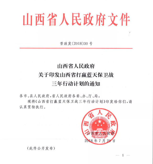 山西省打贏藍(lán)天保衛(wèi)戰(zhàn)三年行動(dòng)計(jì)劃提到,為認(rèn)真貫徹落實(shí)中共中央、國(guó)務(wù)院《關(guān)于全面加強(qiáng)生態(tài)環(huán)境保護(hù)堅(jiān)決打好污染防治攻堅(jiān)戰(zhàn)的意見(jiàn))(中發(fā)[2018]17號(hào))、《國(guó)務(wù)院關(guān)于印發(fā)打贏藍(lán)天保衛(wèi)戰(zhàn)三年行動(dòng)計(jì)劃的通知》(國(guó)發(fā)辦[2018]22號(hào))精神,堅(jiān)決打贏山西省藍(lán)天保衛(wèi)戰(zhàn),制定《山西省打贏藍(lán)天保衛(wèi)戰(zhàn)三年行動(dòng)計(jì)劃》(以下簡(jiǎn)稱“行動(dòng)計(jì)劃”)。