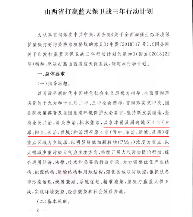 行動(dòng)計(jì)劃以京津冀及周邊地區(qū)4市(太原、陽(yáng)泉、長(zhǎng)治、晉城)和汾渭平原4市(晉中、臨汾、運(yùn)城、呂梁)等重點(diǎn)區(qū)域?yàn)橹鲬?zhàn)場(chǎng),以明顯降低細(xì)顆粒物(PM2.5)濃度為重點(diǎn),以大幅減少重污染天氣為主攻方向,持續(xù)開(kāi)展大氣污染防治行動(dòng)。