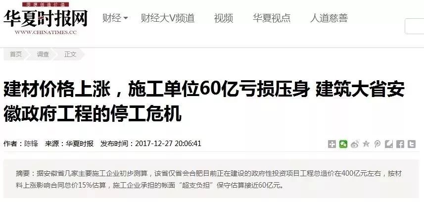 2017年12月27日,華夏時報一篇關(guān)于“建材價格上漲”的報道迅速傳遍“工程圈”,一時間議論紛紛,有同情有指責,更多的是期待。