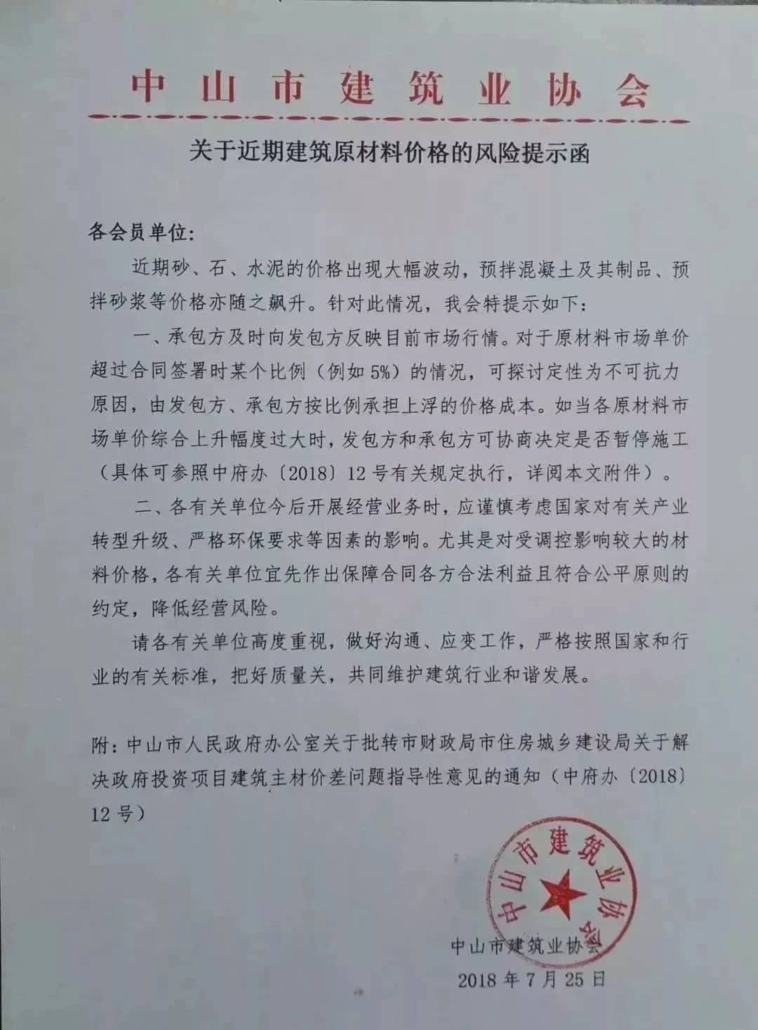 7月25日,中山市建筑業(yè)協(xié)會發(fā)文,要求:
