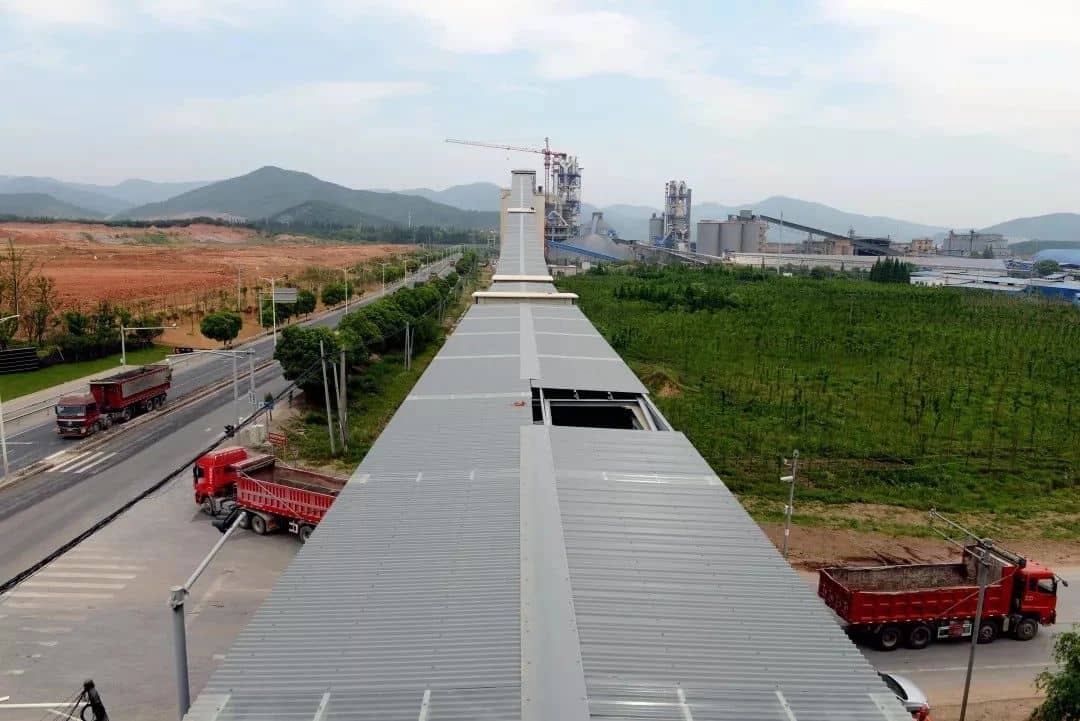 熟料儲庫底下,也有膠帶輸送機(jī),長達(dá)5km,連接的是位于煤山鎮(zhèn)的長興南方。長興南方的外側(cè),也有3個熟料儲庫?;笨材戏缴a(chǎn)的熟料,也是這樣運(yùn)到長興南方的。