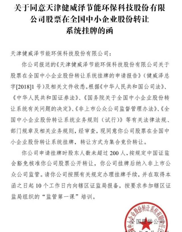 【水泥人網(wǎng)】據(jù)全國中小企業(yè)股份轉(zhuǎn)讓系統(tǒng)相關(guān)消息顯示,國內(nèi)余電發(fā)熱工程領(lǐng)域的技術(shù)服務(wù)及改造領(lǐng)域的引領(lǐng)者,天津健威澤節(jié)能環(huán)??萍脊煞萦邢薰?以下簡稱“天津健威澤”)已于2018年7月31日起成功在新三板掛牌,這是天津健威澤的里程碑。在今后的發(fā)展過程中,天津健威澤將會加大在技術(shù)研發(fā),用戶服務(wù)、社會責(zé)任方面的投入,切實回報用戶、回報各大股東,實現(xiàn)企業(yè)利益最大化。