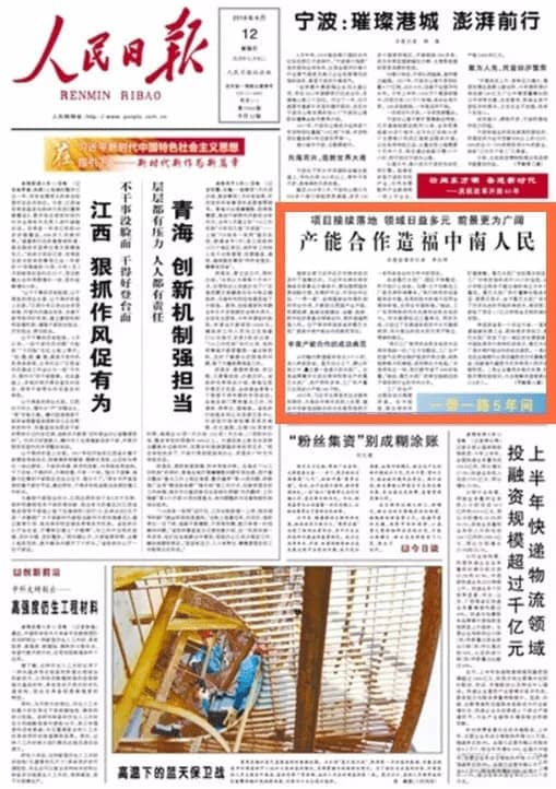 《人民日報》頭版刊登報道