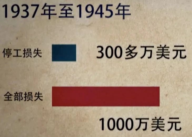 據戰(zhàn)后1946年的數(shù)據統(tǒng)計,從1937年至1945年,僅工廠停工這一項,損失就高達300多萬美元。