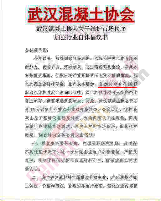 加之水泥企業(yè)錯(cuò)峰停窯,生產(chǎn)成本增加,水泥價(jià)格再次上調(diào)50元/噸,給下游預(yù)拌混凝土企業(yè)雪上加霜,供需矛盾急劇加大,因此,在這非常時(shí)期,發(fā)出倡議。