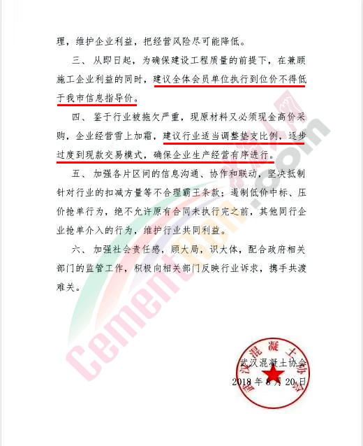此次倡議包括要確?;炷临|(zhì)量,穩(wěn)定市場(chǎng)價(jià)格,推行現(xiàn)金交易,杜絕低價(jià)競(jìng)爭(zhēng)等內(nèi)容,希望所有會(huì)員團(tuán)結(jié)一致,共渡難關(guān)。
