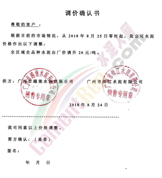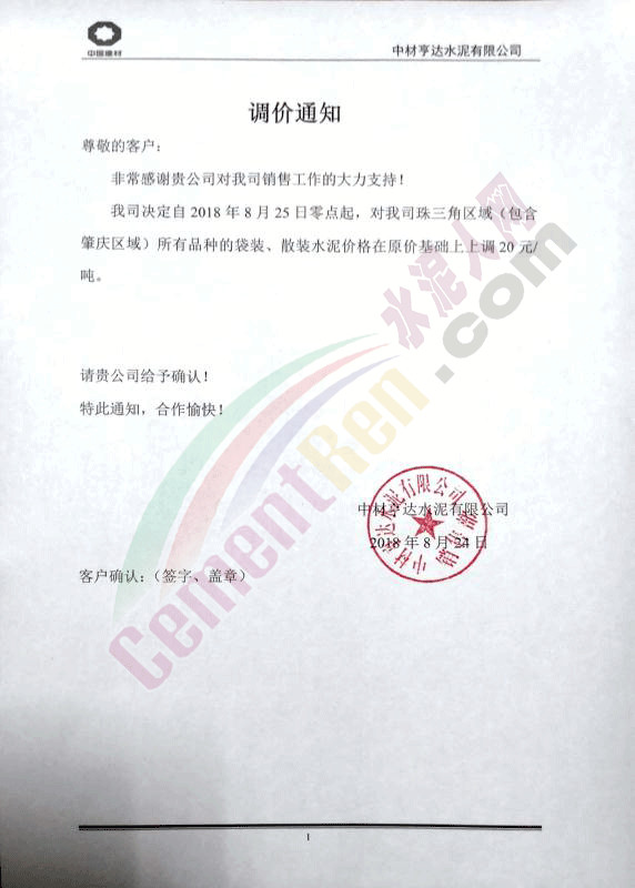 【水泥人網(wǎng)】近兩日廣東珠三角區(qū)域多家企業(yè)發(fā)布提價通知稱上調(diào)水泥價格。