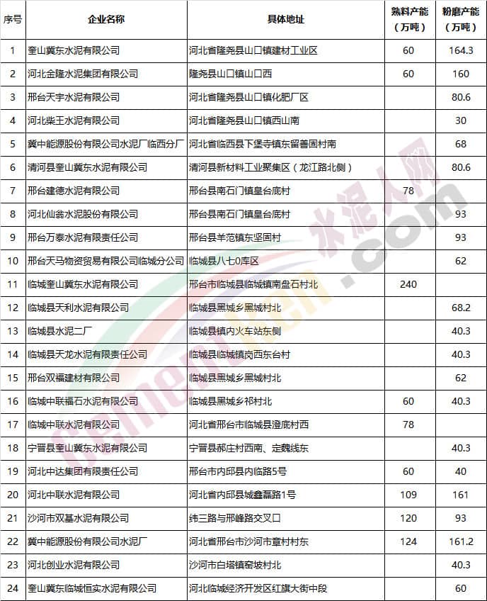 水泥企業(yè)名錄