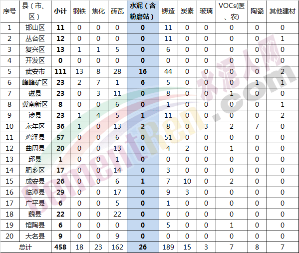 注:各縣(市、區(qū))進一步核實本區(qū)域10個重點行業(yè)錯峰生產(chǎn)企業(yè)底數(shù),未上報按漏報計,采暖季一律停產(chǎn)。