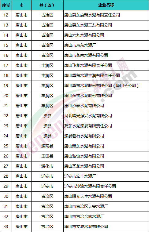 唐山市重點(diǎn)排污水泥企業(yè)名錄