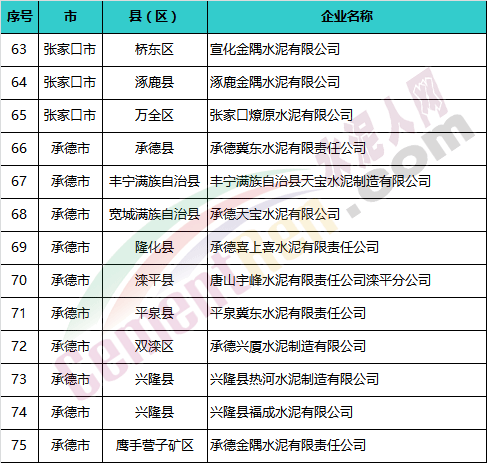 張家口市、承德市重點(diǎn)排污水泥企業(yè)名錄