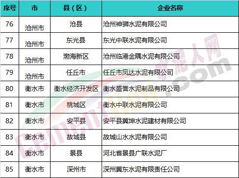 滄州市、衡水市重點(diǎn)排污水泥企業(yè)名錄