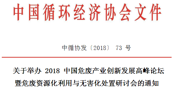 生態(tài)文明建設(shè)是中國特色社會(huì)主義事業(yè)“五位一體”總體布局的重要組成部分。在習(xí)主席新時(shí)代中國特色社會(huì)主義思想指引下,“環(huán) 境保護(hù)和綠色發(fā)展”已成為鮮明的時(shí)代主題。2018 年危廢相關(guān)政策相繼出臺(tái),生態(tài)環(huán)境部對(duì)于固廢監(jiān)管的力度在不斷加大,社會(huì)資本規(guī)模性 進(jìn)入危廢產(chǎn)業(yè),危廢產(chǎn)業(yè)格局正逐步從粗放走向集約。然而,危廢行業(yè) 起步晚、危廢分布的復(fù)雜性和多樣性,使得危廢的管理與處理處置成為 當(dāng)前的重要挑戰(zhàn)。為規(guī)范危險(xiǎn)廢物處置工程建設(shè)和運(yùn)行,提高危廢利用 總體處置水平,控制環(huán)境風(fēng)險(xiǎn),改善環(huán)境質(zhì)量,建立廢物循環(huán)利用體系, 實(shí)現(xiàn)危險(xiǎn)廢物處置減量化、資源化和無害化目標(biāo),中國循環(huán)經(jīng)濟(jì)協(xié)會(huì)聯(lián) 合中國危廢產(chǎn)業(yè)網(wǎng)、46 危廢平臺(tái)于 2018 年11 月3 至4 日舉辦第二屆“中國危廢產(chǎn)業(yè)創(chuàng)新發(fā)展高峰論壇暨危廢資源化利用與無害化處置研討會(huì)”。歡迎各單位選派或組織相關(guān)人員參加?,F(xiàn)將論 壇具體內(nèi)容通知如下: