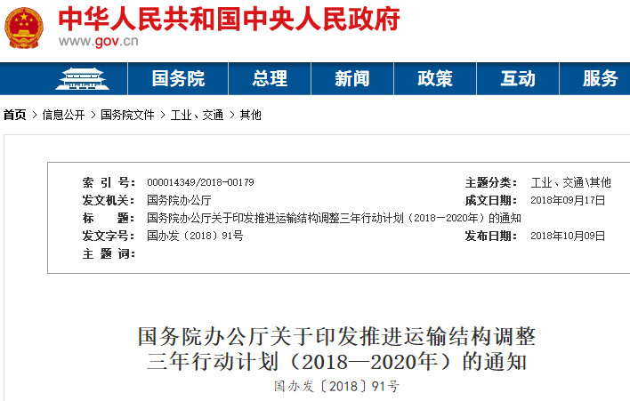 推進(jìn)運(yùn)輸結(jié)構(gòu)調(diào)整三年行動(dòng)計(jì)劃