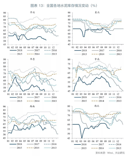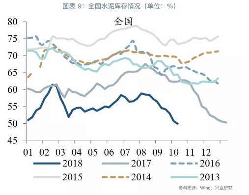 后市展望:本月固定資產(chǎn)投資有企穩(wěn)跡象,基建投資持續(xù)下滑,但房地產(chǎn)開(kāi)發(fā)投資的增長(zhǎng)較為穩(wěn)定,考慮到政府在基建投資的發(fā)力,財(cái)政政策和貨幣政策持續(xù)寬松,下游地產(chǎn)和基建企業(yè)的資金寬松可期,預(yù)計(jì)基建投資復(fù)蘇可期。而且從短期來(lái)看,10月下旬全國(guó)多數(shù)地區(qū)適宜開(kāi)工,水泥市場(chǎng)將處于旺季階段。但供給方面近期環(huán)保略有放松,日前有京津冀地區(qū)傳達(dá)了不在劃定重工業(yè)限產(chǎn)比例的通知,環(huán)保端改變“一刀切”,但壓力仍在,行業(yè)自律錯(cuò)峰生產(chǎn)力度仍較大。因此整體看,短期內(nèi)水泥高景氣度仍然持續(xù),但中期內(nèi)可能承壓。