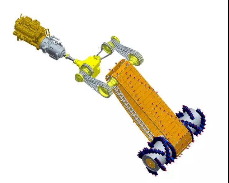 同時(shí)由于采用機(jī)械式傳動(dòng),整個(gè)系統(tǒng)更加簡(jiǎn)單,消耗更加低,維修更加方便。相比較在作業(yè)條件艱難的礦山使用,尤其是抗壓強(qiáng)度超過(guò)80Mpa的巖石工作, 其比液力傳動(dòng)的采礦機(jī)適用性更強(qiáng);切割滾筒置于端部,更容易域的工作;設(shè)備為開(kāi)溝機(jī)發(fā)展而來(lái),具有良好的爬坡能力,也能夠更好的應(yīng)用于礦山基建和采準(zhǔn)工作。