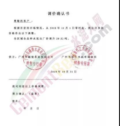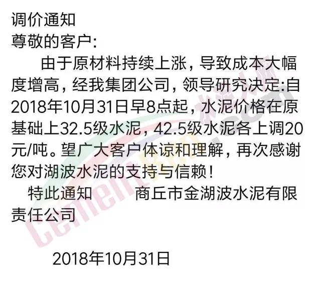 同期發(fā)布漲價通知的還有河南區(qū)域的金湖波水泥。