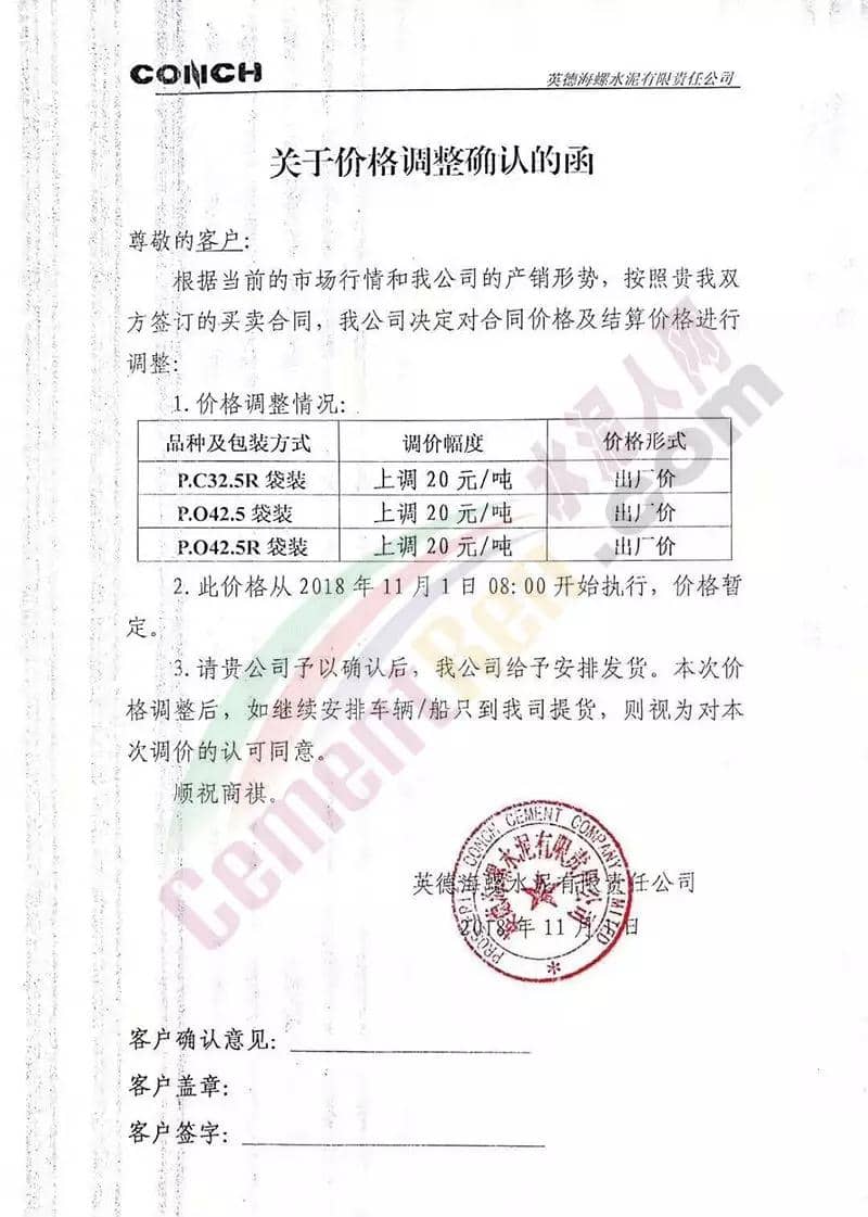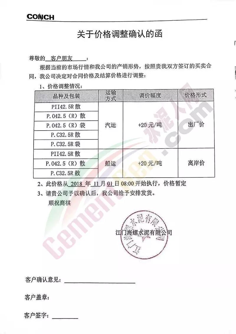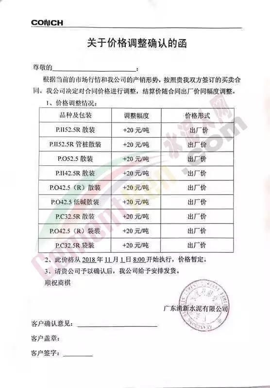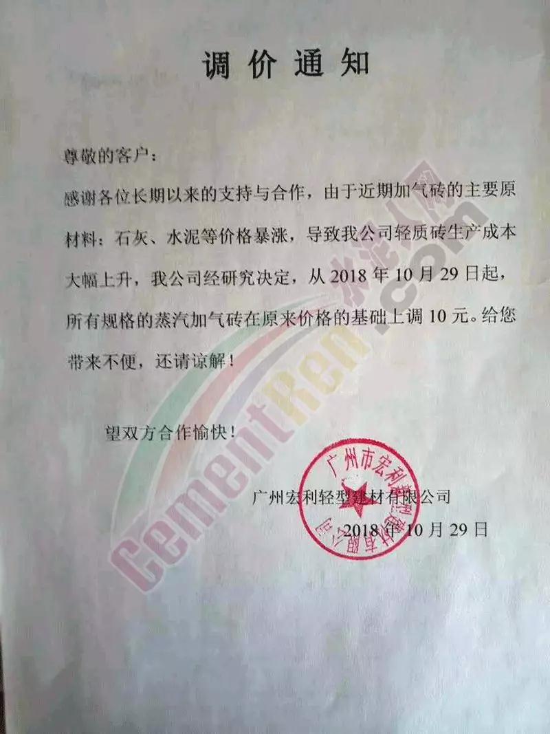 華南區(qū)域廣東、廣西區(qū)域水泥企業(yè)漲價(jià)通知函