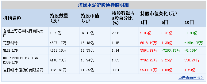 海螺水泥滬股通持股每日變動(dòng)如下: