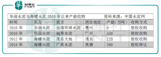 2017年,廣東水泥企業(yè)的市占率排在前五名的企業(yè)分別是華潤(18.05%)、海螺(14.76%)、臺泥(12.24%)、塔牌(8.63%)和中材(7.06%)。作為華南地區(qū)最大的水泥、熟料及混凝土生產(chǎn)商,華潤水泥的競爭力先是基于其在廣東地區(qū)扎根多年的經(jīng)營優(yōu)勢?;厮萑A潤水泥組建初期,它曾收購東莞水泥、東莞混凝土及深圳混凝土等資產(chǎn)的100%股權來充實自身,這些都是自上世紀90年代開始就投產(chǎn)的資深水泥企業(yè)。華潤水泥上市之后,又經(jīng)過股權收購的方式來進一步擴大在廣東本土的水泥資產(chǎn)。